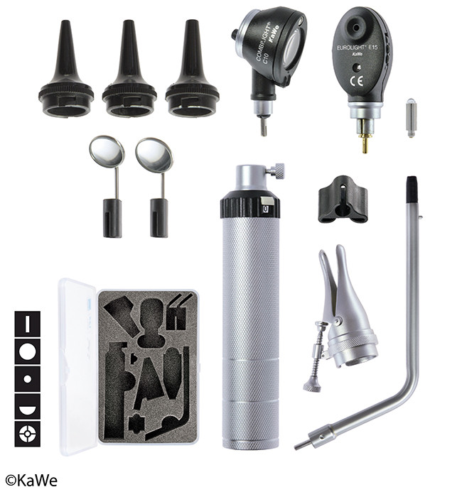 Набір & laquo; Бесік & raquo; C10 / E15 є практичним і якісним комплектом від німецької компанії KaWe, що складається з отоскопа, офтальмоскопа і аксесуарів. Для продукції даного виробника властива висока якість і надійність. При необхідності проведення первинної діагностики очного дна і слухового проходу, набору буде досить для здійснення поставлених завдань.